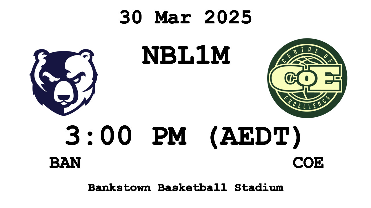 : Bankstown Bruins v Basketball Australia C.o.E. — 2025-03-30 13:00 — BAN: 61 - COE: 86 [FINAL]