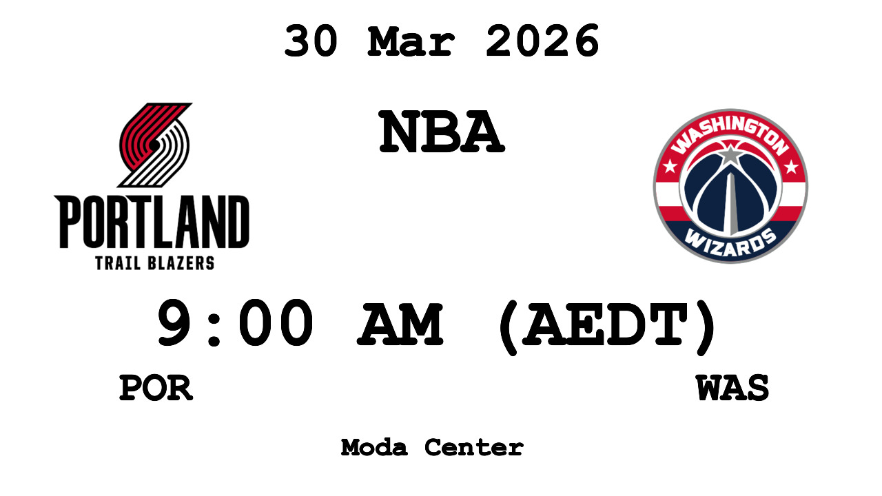 : POR Trail Blazers v WAS Wizards — 2026-03-30 09:00 — POR: 0 - WAS: 0 [NOT STARTED]