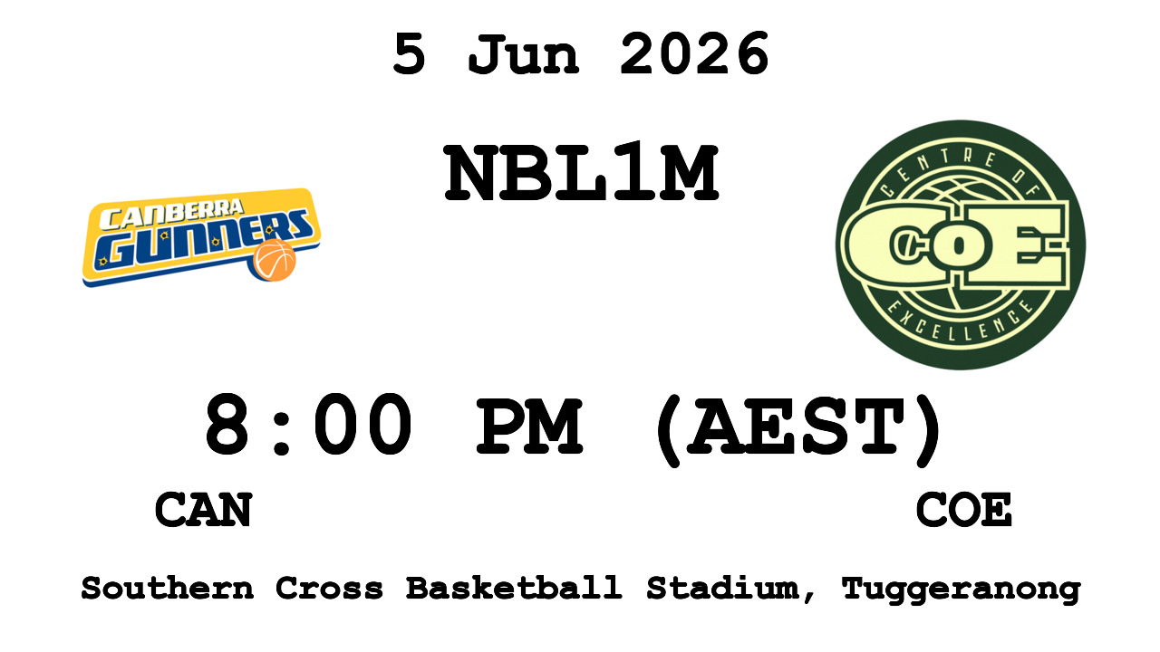 : Canberra Gunners v Basketball Australia C.o.E. — 2026-06-05 20:00 — CAN: 0 - COE: 0