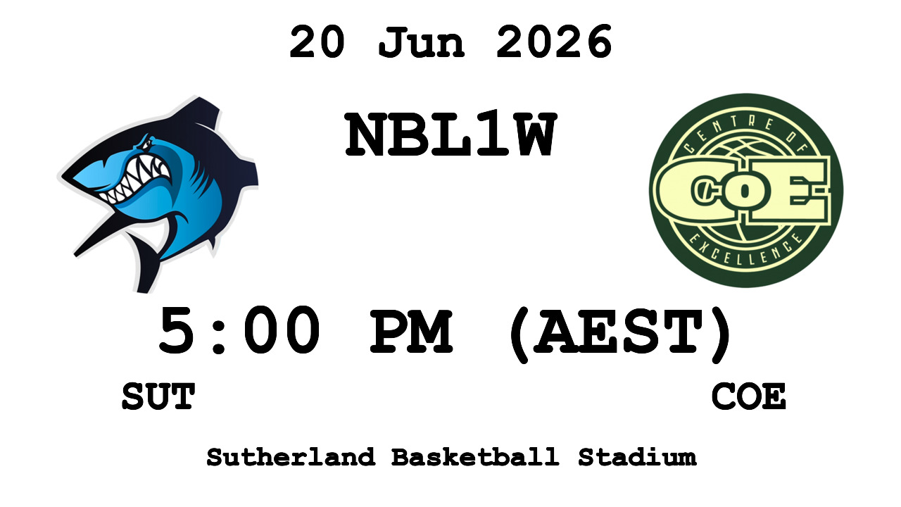 : Sutherland Sharks v Basketball Australia C.o.E. — 2026-06-20 19:00 — SUT: 0 - COE: 0